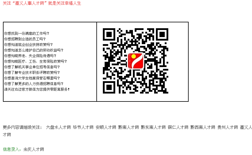 作者:余庆人才网yq.zyrc.net 时间:2017/6/9 阅读:446次